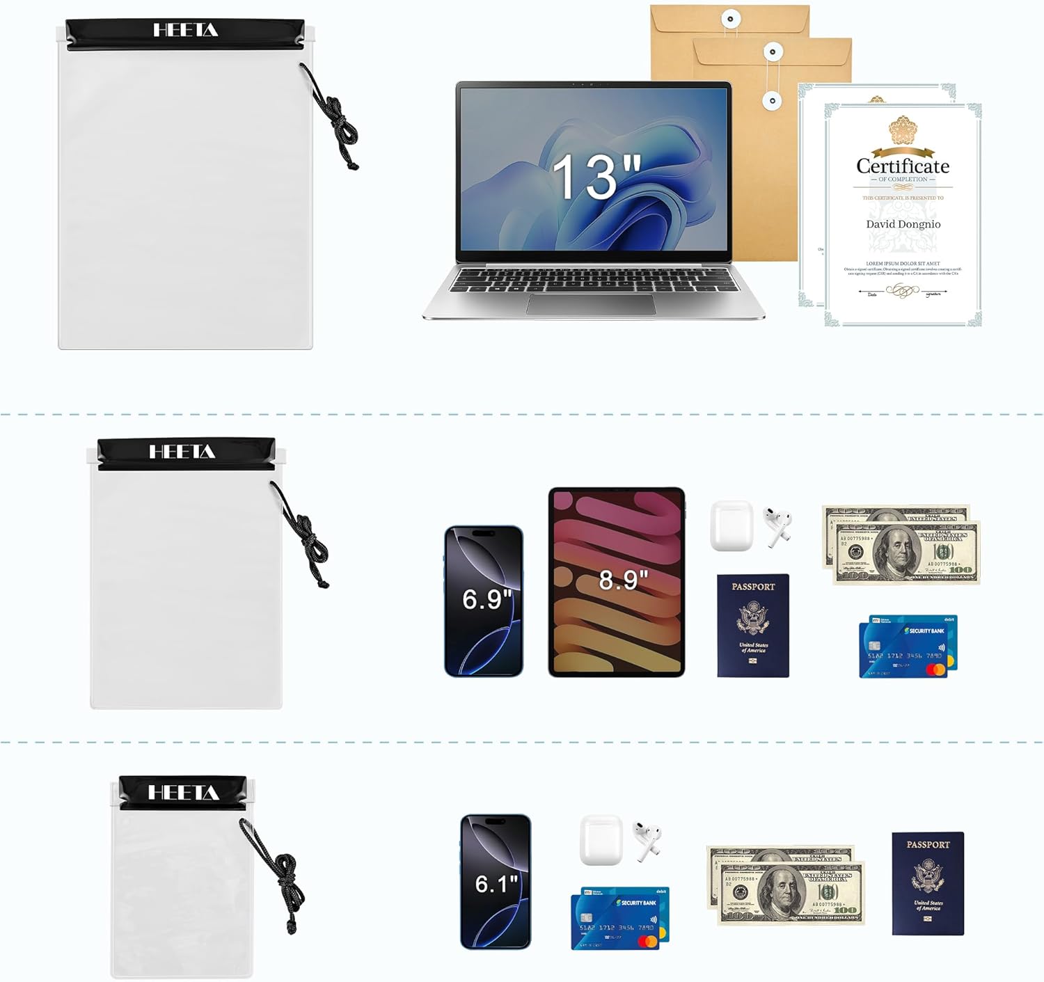 Each pack includes five different-sized dry bags, allowing you to conveniently store and organize various items. From small essentials to larger gadgets, these pouches offer versatile protection for all your belongings.